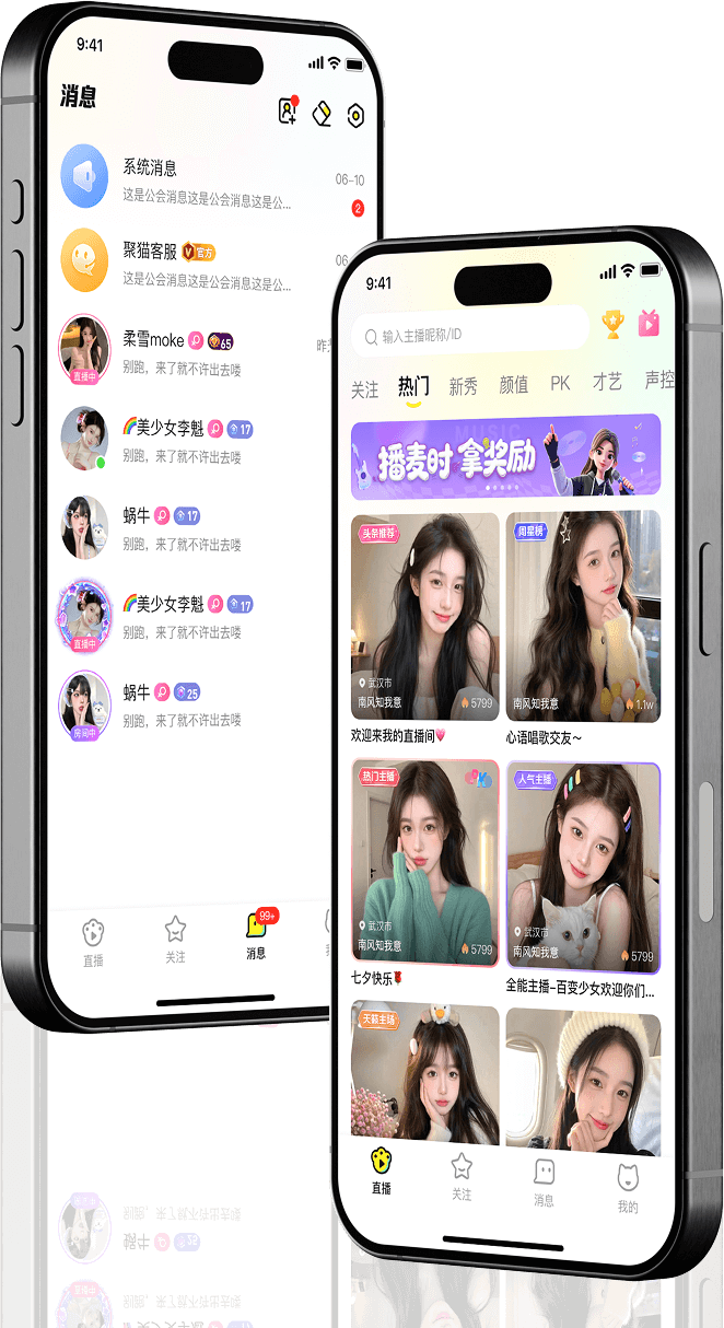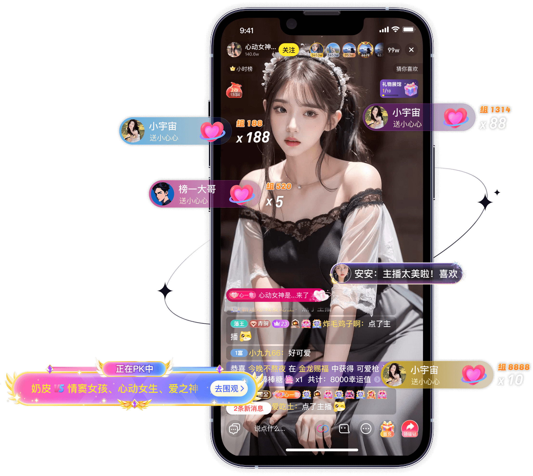 给所有喜欢直播的人一个展现自我的平台,还有主播连麦pk功能,为自己喜欢的主播送点礼物吧!开通守护功能,来守护你喜欢的主播;贵族勋章等级越高,拥有直播间权利越多。